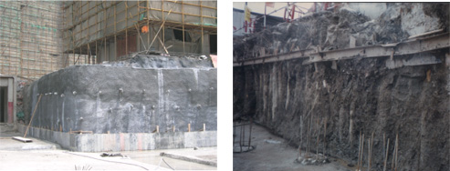 土釘墻就是在基坑開挖時向側(cè)壁土體內(nèi)打入一定長度的土釘,再將各層土釘端部用鋼筋網(wǎng)片拉結(jié)起來,最后于側(cè)壁上噴射速凝細(xì)石混凝土墻面的基坑護(hù)坡方法 (它利用土釘與土體之間提供的摩擦阻力,抵擋基坑側(cè)壁外部土體的推力,防止基坑土體側(cè)向位移,從而使基坑穩(wěn)定) 。